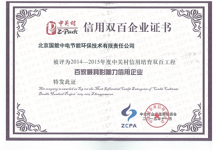 我公司被評為2014-2015年度中關(guān)村信用培育雙百工程“百家最具影響力信用企業(yè)”