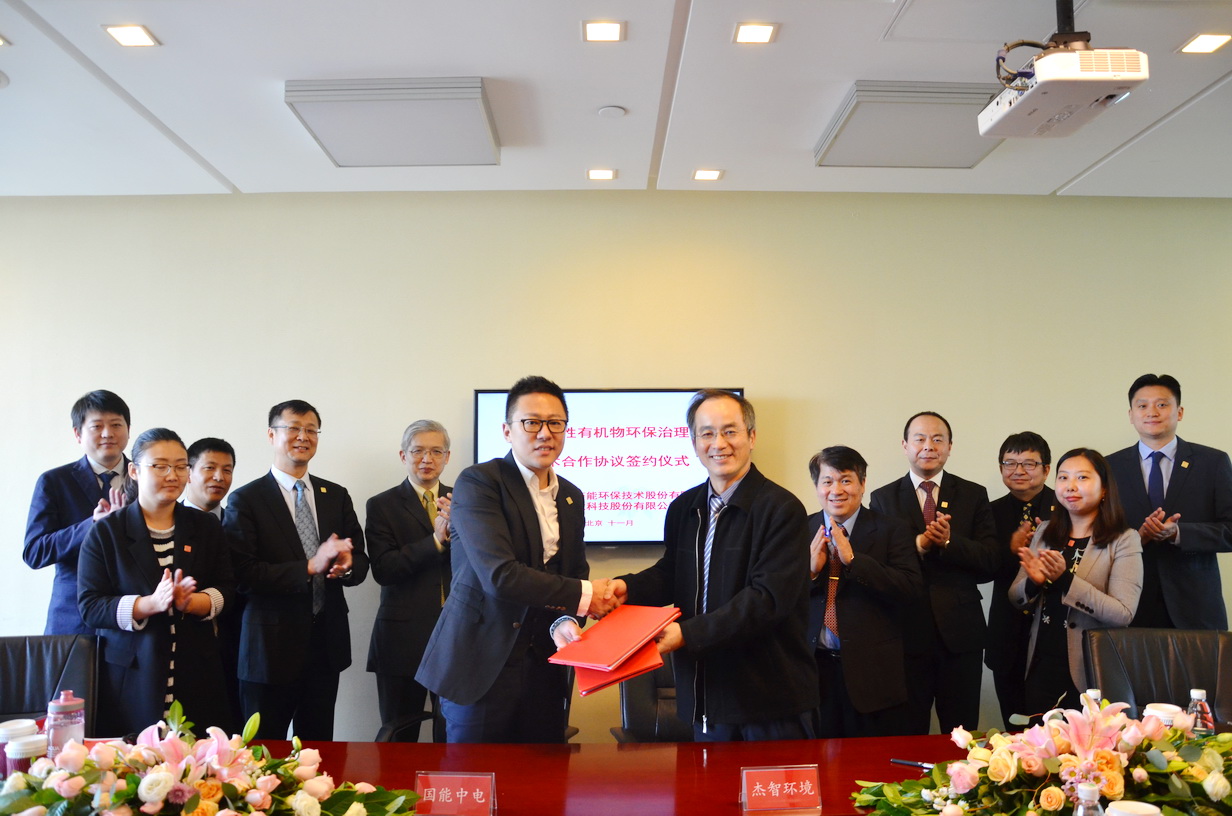 2017年11月7日上午,北京國能中電節能環保技術股份有限公司與杰智環境科技股份有限公司就“揮發性有機物環保治理”項目合作達成協議,并在國能中電公司舉行了隆重而熱烈的簽約儀式。