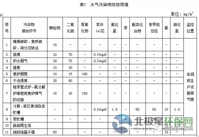 煉焦化學(xué)工業(yè)大氣污染物排放標(biāo)準(zhǔn)