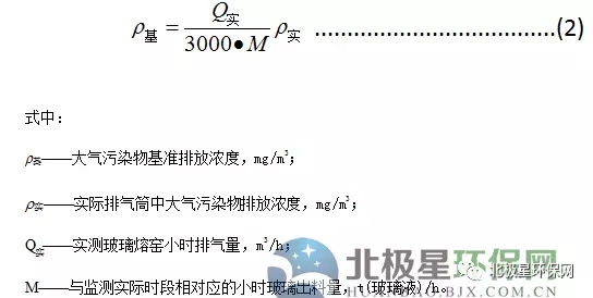1.5 純氧燃燒玻璃熔窯應(yīng)監(jiān)測(cè)排氣筒中大氣污染物排氣濃度、排氣量及相應(yīng)時(shí)間的玻璃出料量,按式(2)計(jì)算基準(zhǔn)排放量[3000m3/t(玻璃液)]條件下的基準(zhǔn)排放濃度。并以此作為判定排放是否達(dá)標(biāo)的依據(jù)。大氣污染物排放濃度、排氣量、產(chǎn)品產(chǎn)量的監(jiān)測(cè)、統(tǒng)計(jì)周期為1h,可連續(xù)采樣或等時(shí)間間隔采樣獲得大氣污染物排放濃度和排放氣量數(shù)據(jù),玻璃出料量數(shù)據(jù)以企業(yè)統(tǒng)計(jì)報(bào)表為依據(jù)。