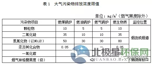 1.2 2020年1月1日起,現(xiàn)有企業(yè)執(zhí)行表1規(guī)定的大氣污染物超低排放限值。