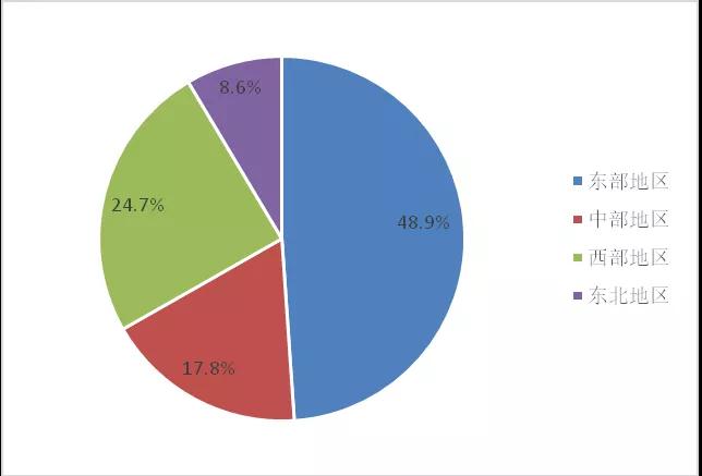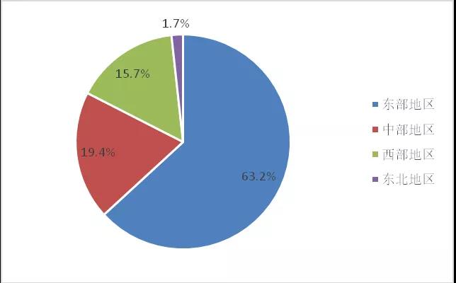 三、東部地區產業貢獻顯著,營收總額超過中、西部和東北三個地區營收總和